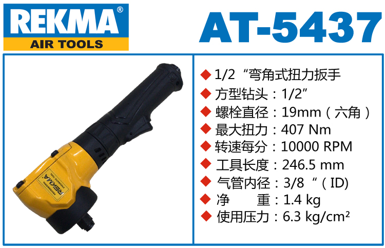REKMA AT-5437氣動(dòng)扳手彎頭特點(diǎn):(重力壓鑄外殼,強(qiáng)度更高不變形,提高耐用度)