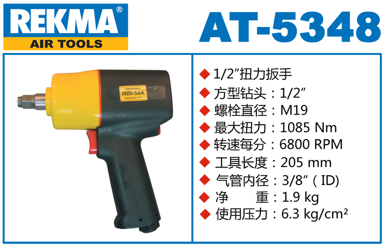 REKMA AT-5348氣動扳手特點:(塑鋼外殼,強度更高不變形,提高耐用度)
