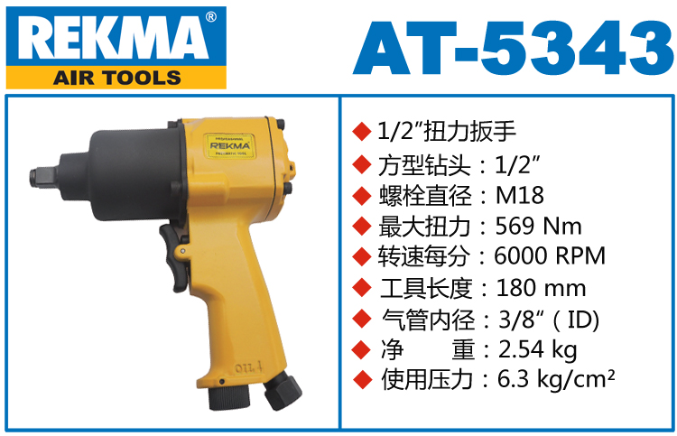 REKMA AT-5343氣動沖擊扳手特點:(塑鋼外殼,強度更高不變形,提高耐用度)