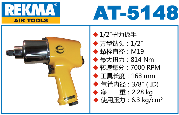 REKMA AT-5148雙錘氣動(dòng)扳手特點(diǎn):(重力壓鑄外殼,強(qiáng)度更高不變形,提高耐用度)